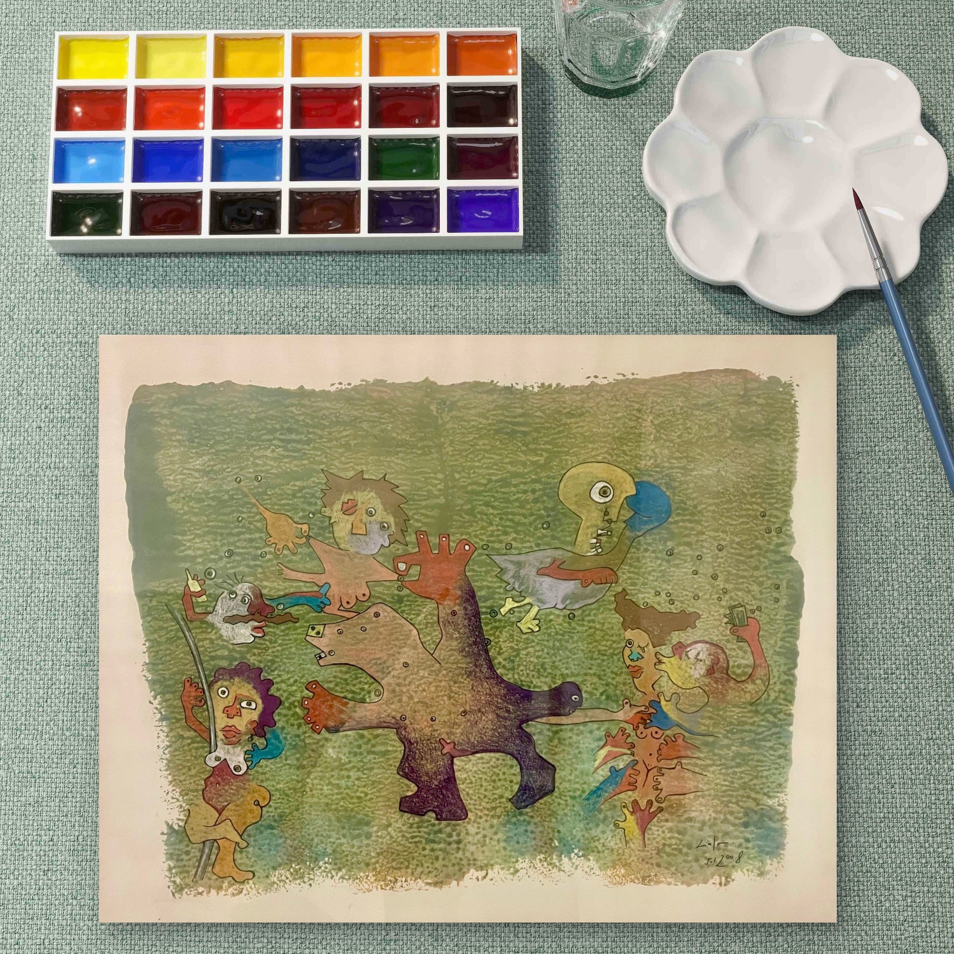 Acrylic and watercolor on paper