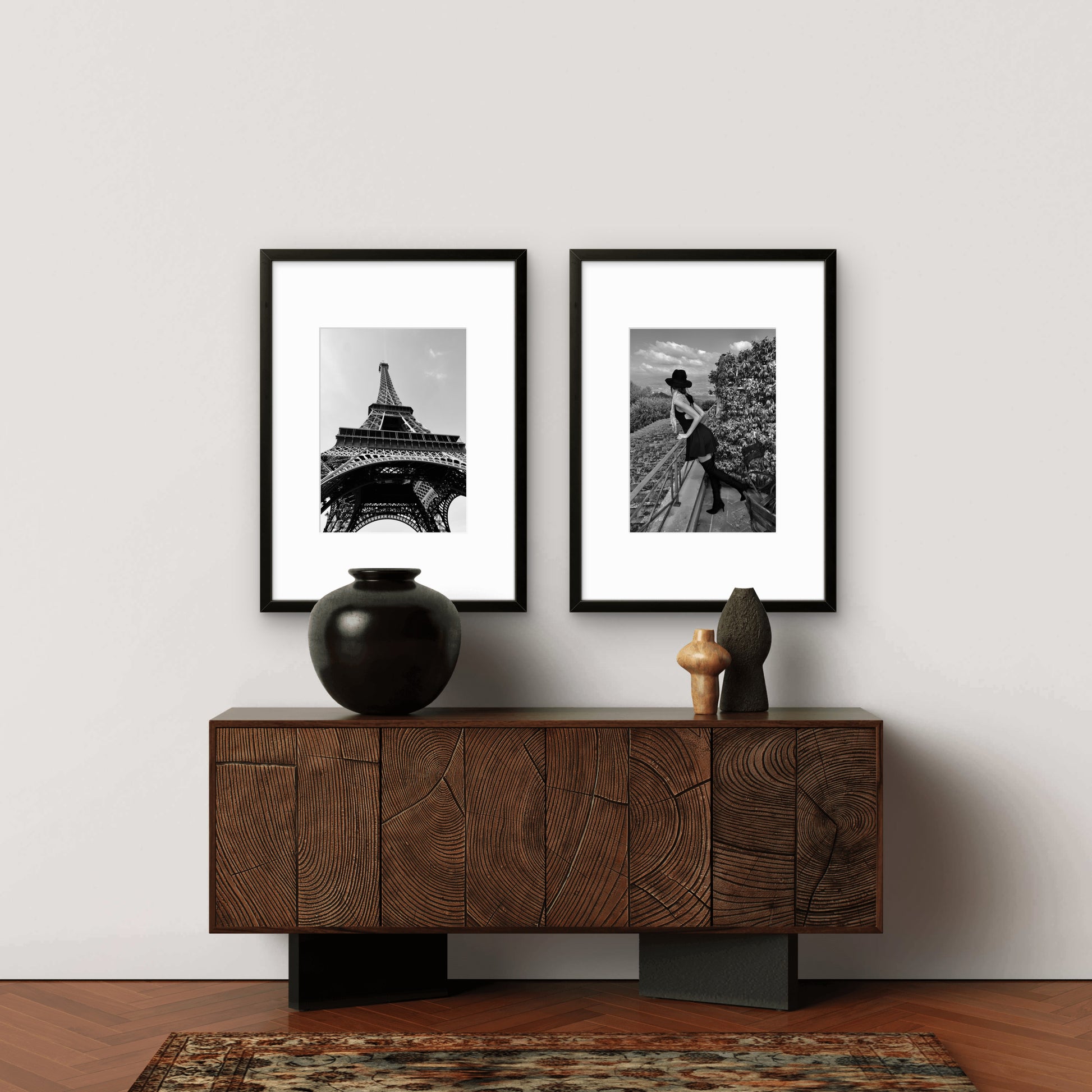 Complementing this piece is a serene photograph from “Tuscany”, featuring a tranquil villa overlooking olive orchards. The lush, rolling landscape and timeless beauty of the Italian countryside evoke a sense of calm and natural elegance. Taken by the same photographer, this work beautifully contrasts the engineered grandeur of the Eiffel Tower with the organic charm of Tuscany. Together, these black-and-white photographs stand alone but also create a harmonious set, celebrating both architectural and natural beauty through the lens of fine art photography.