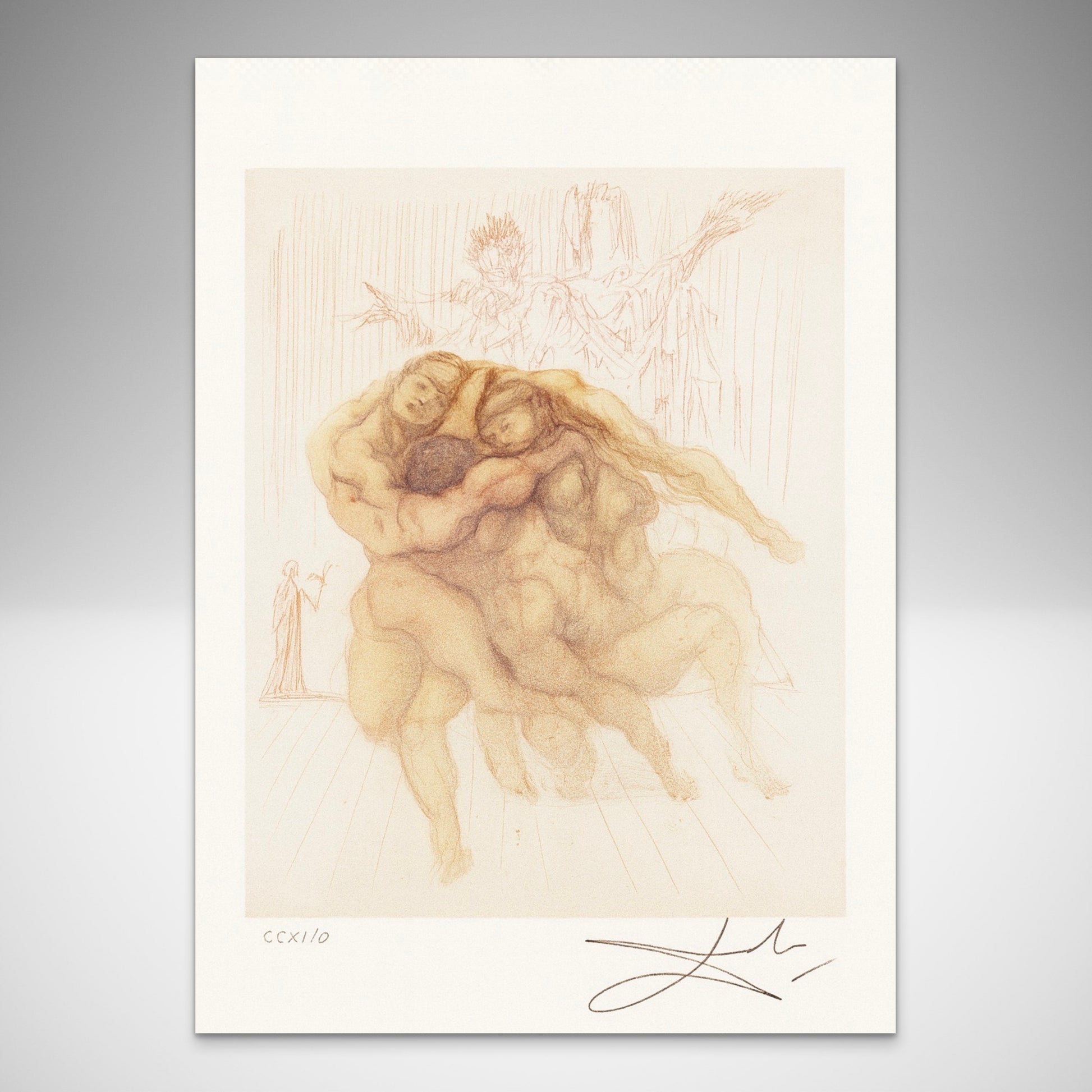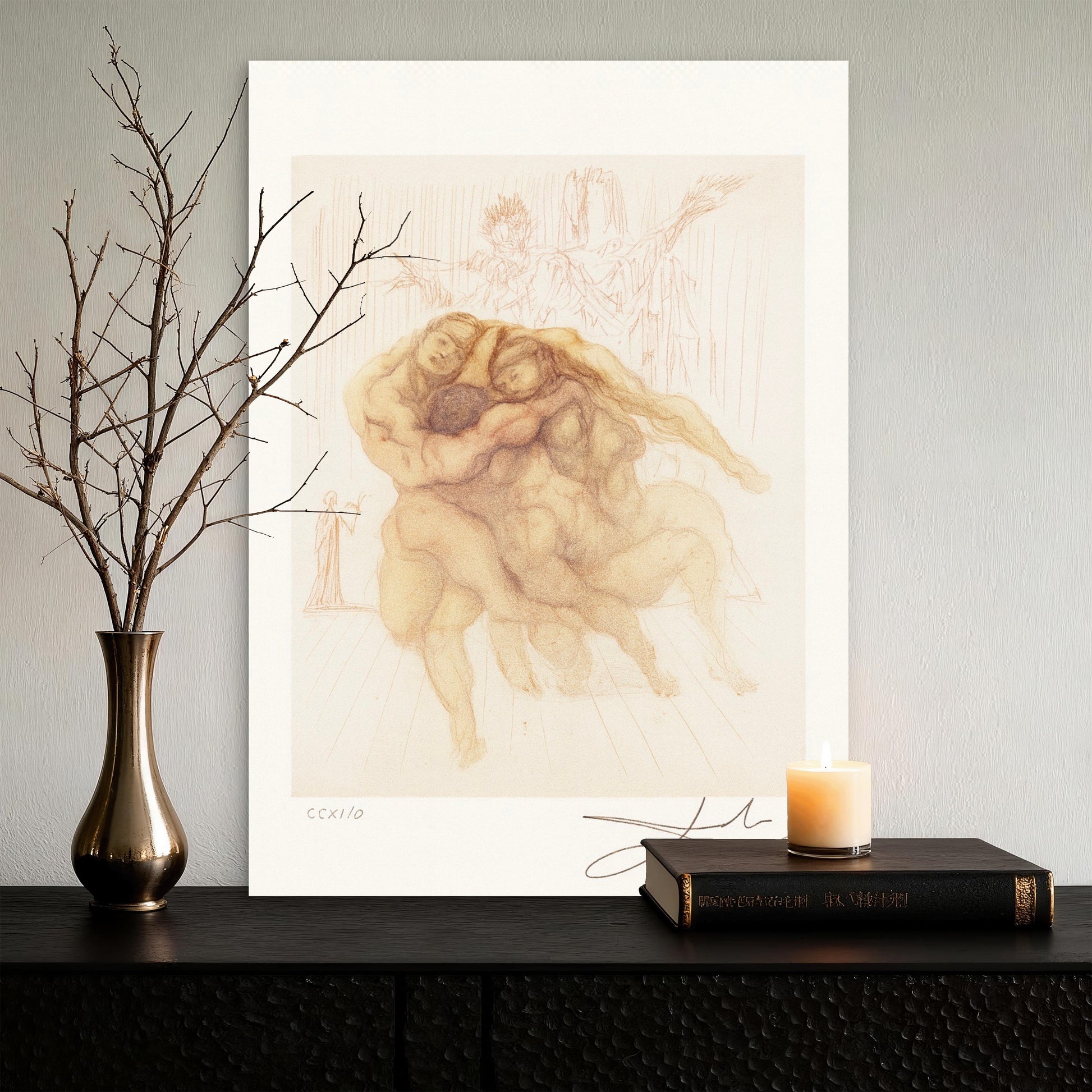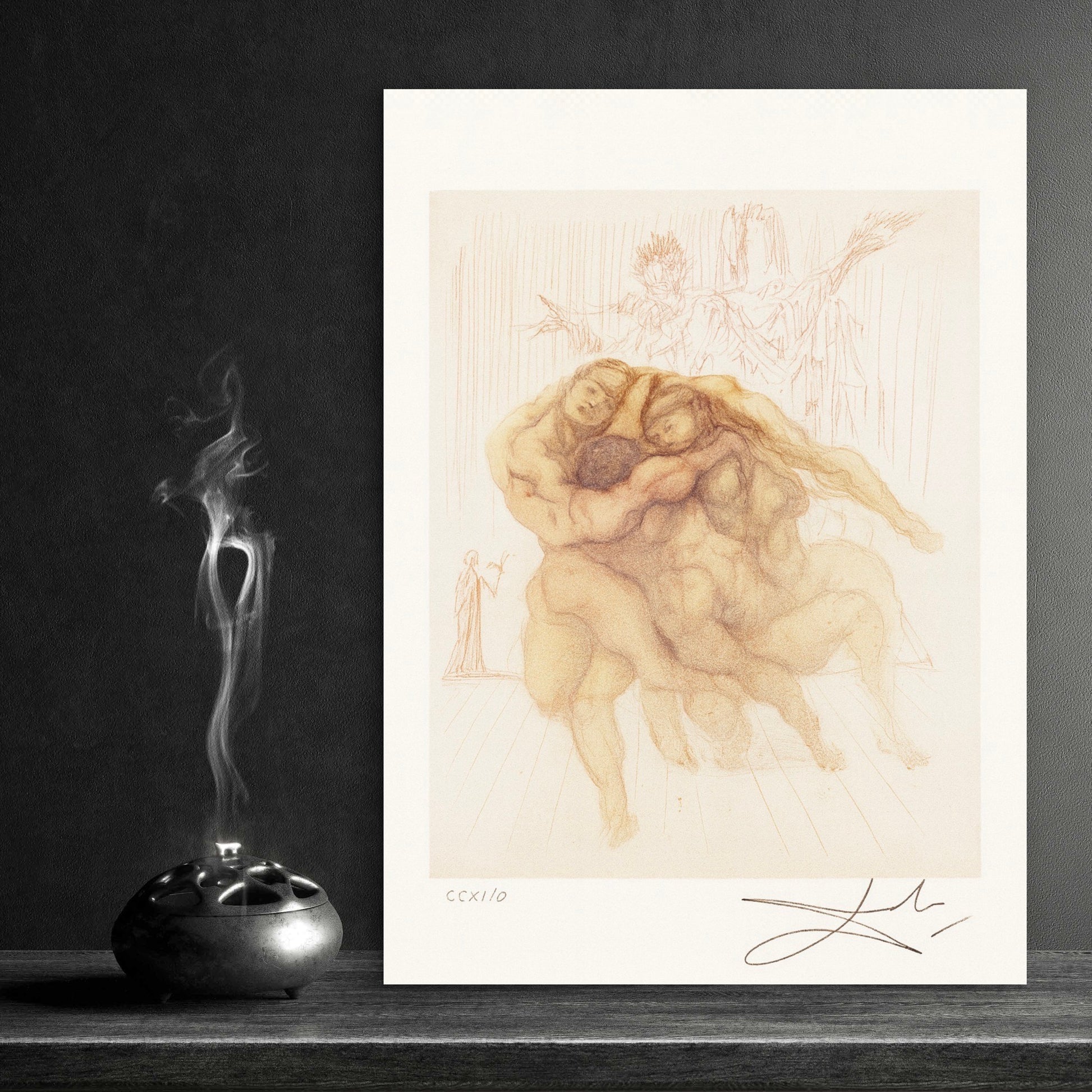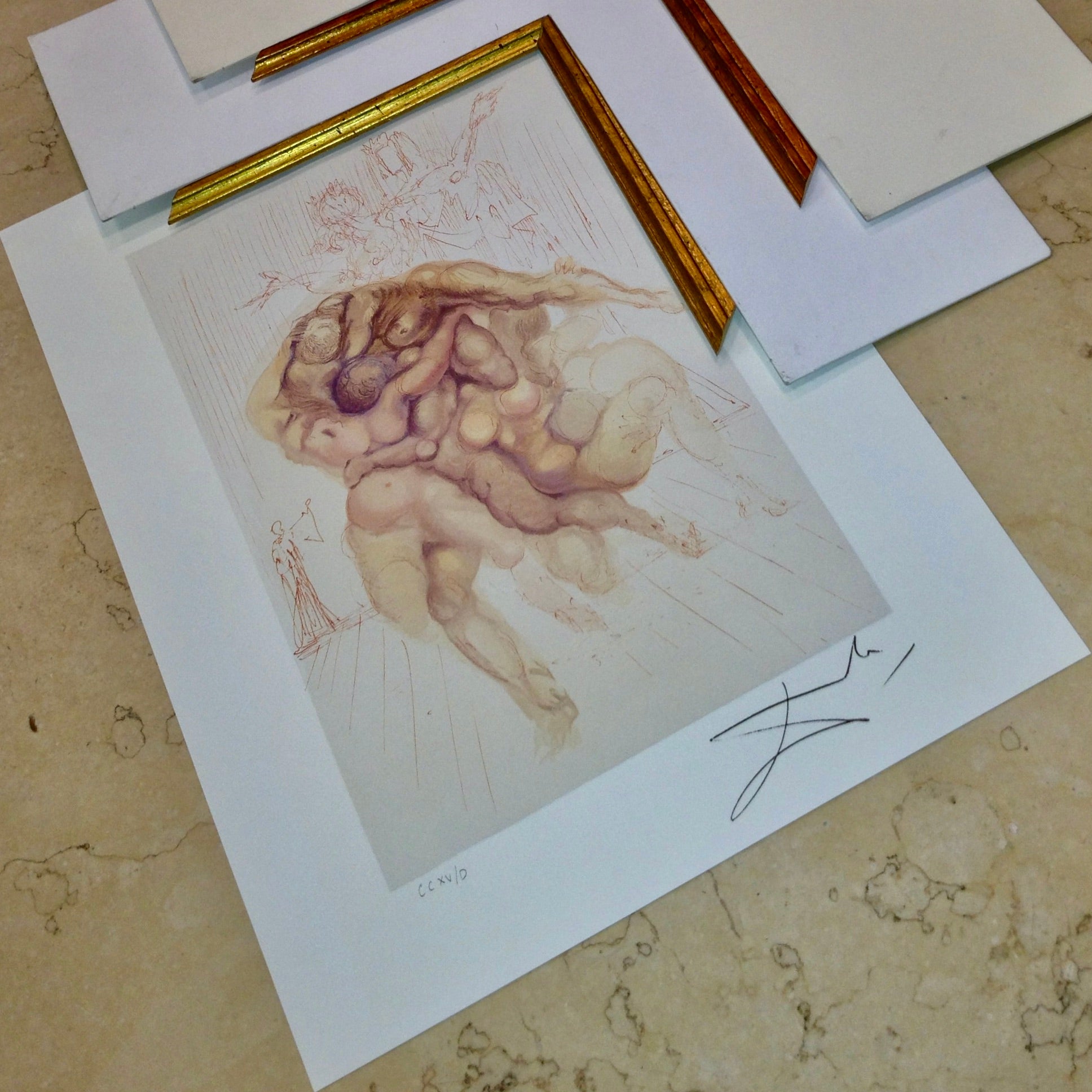 This 1963 woodcut engraving, “El iracundo” (The Wrathful), is part of Salvador Dalí’s celebrated Divine Comedy – Inferno series. Limited edition, hand-signed version and highly collectible work, it showcases Dalí’s surreal interpretation of Dante’s vision of Hell.