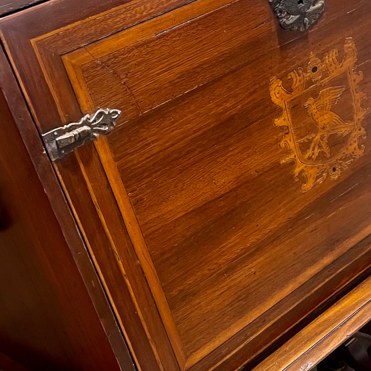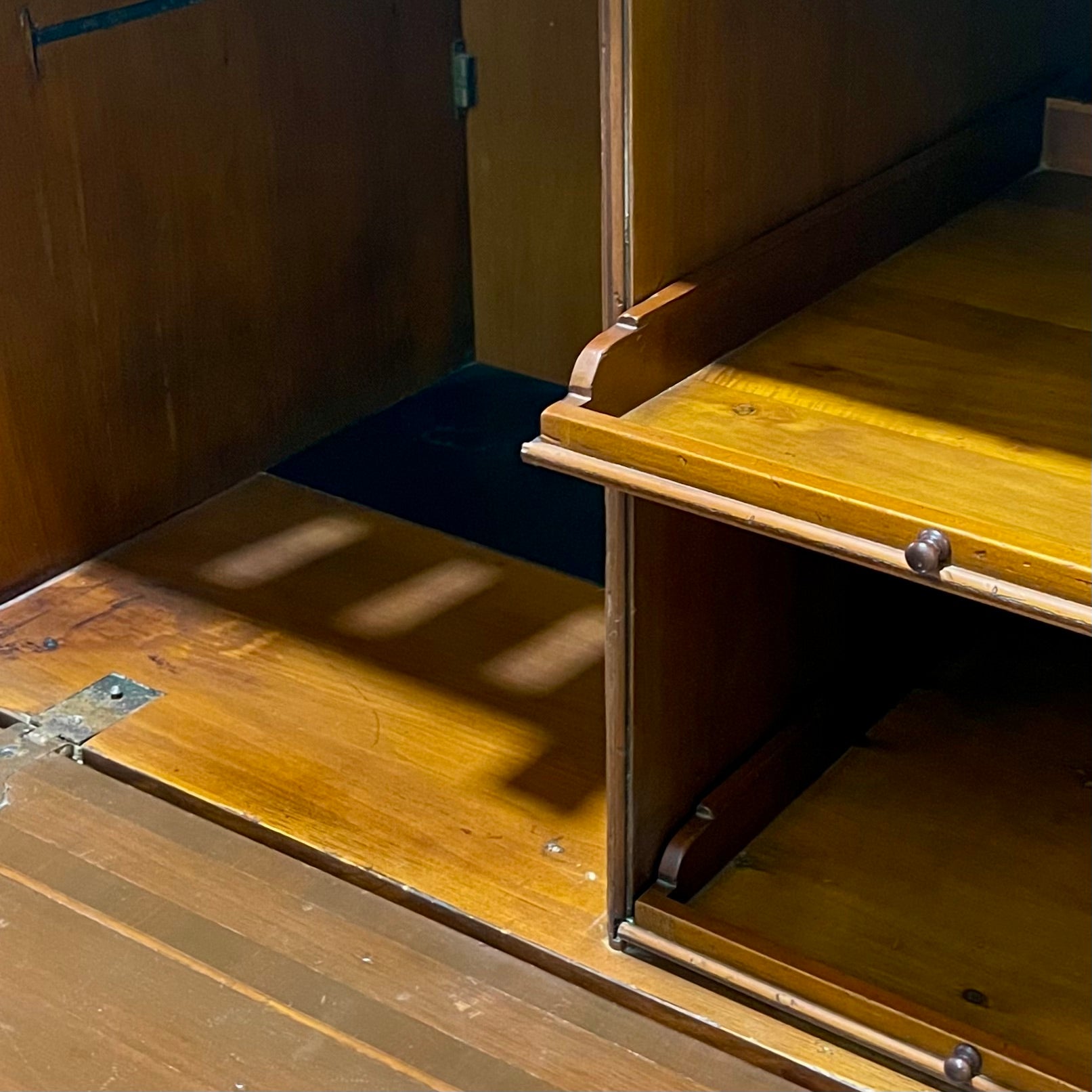 Inside, the cantina reveals a thoughtfully designed mini-bar compartment, complete with proper venting for a small refrigerator and two beautifully constructed pull-out shelves for effortless access and organization. Every detail reflects the refined craftsmanship of a bygone era—making this piece not only functional, but a true collectible.