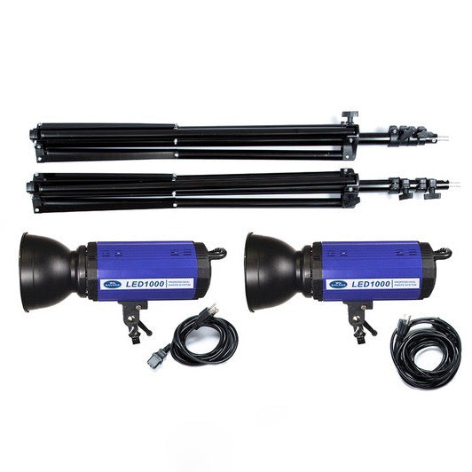 Each of the two cool running LED lights produce the equivalent of 1000 watts of incandescent light (13,000 lumens) when used with the included reflectors, while consuming only 100W of power. The LEDs have a long life expectancy of 50,000 hours.